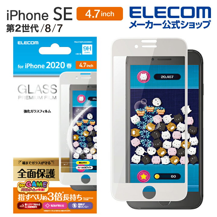 エレコム iPhoneSE 4.7インチ 第2世代 用 フルカバーガラスフィルム 0.33mm ゲーム用 アイフォン SE 2020 4.7 フルカバー ガラス フィルム ホワイト PM-A19AFLGGGMWH